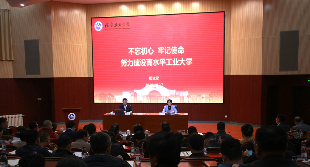 学校党委扎实开展“不忘初心、牢记使命”主题教育,按照工作要求,10月17日下午,党委书记郑文堂率先以《不忘初心 牢记使命 努力建设高水平工业大学》为主题讲授专题党课。市委主题教育第十巡回指导组组长王学勤、副组长刘开阳,成员徐越、李旭东到会指导。全体校领导、中层干部、各级党组织书记、组织员、党务秘书、党员代表共220余人参加学习。党课由党委副书记田红芳主持。 郑文堂书记结合近期理论学习和到各二级单位调研...