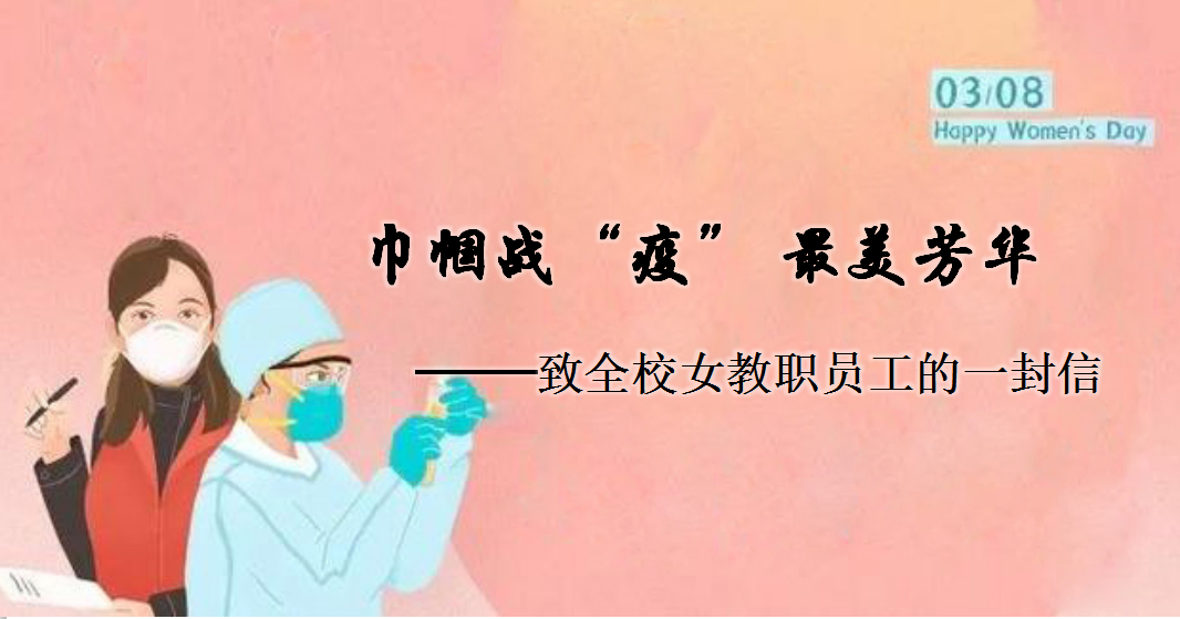 尊敬的女教职员工:北京的三月,乍暖还寒,在举国战“疫”之时,我们迎来了2020年“三▪八”国际劳动妇女节。值此,向以不同形式坚守在教学、科研、管理、服务等岗位上的全校女教职员工致以节日的问候!向全体女教职员工的家属们致以诚挚的慰问!2020年的春节,以举国抗击新冠肺炎开启。数万名逆行和坚守阵地的医者,用生命抢救生命,在这场没有硝烟的战役中,女专家、女医生、女护士……她们是妻子、是母亲、也是女儿,她们最...