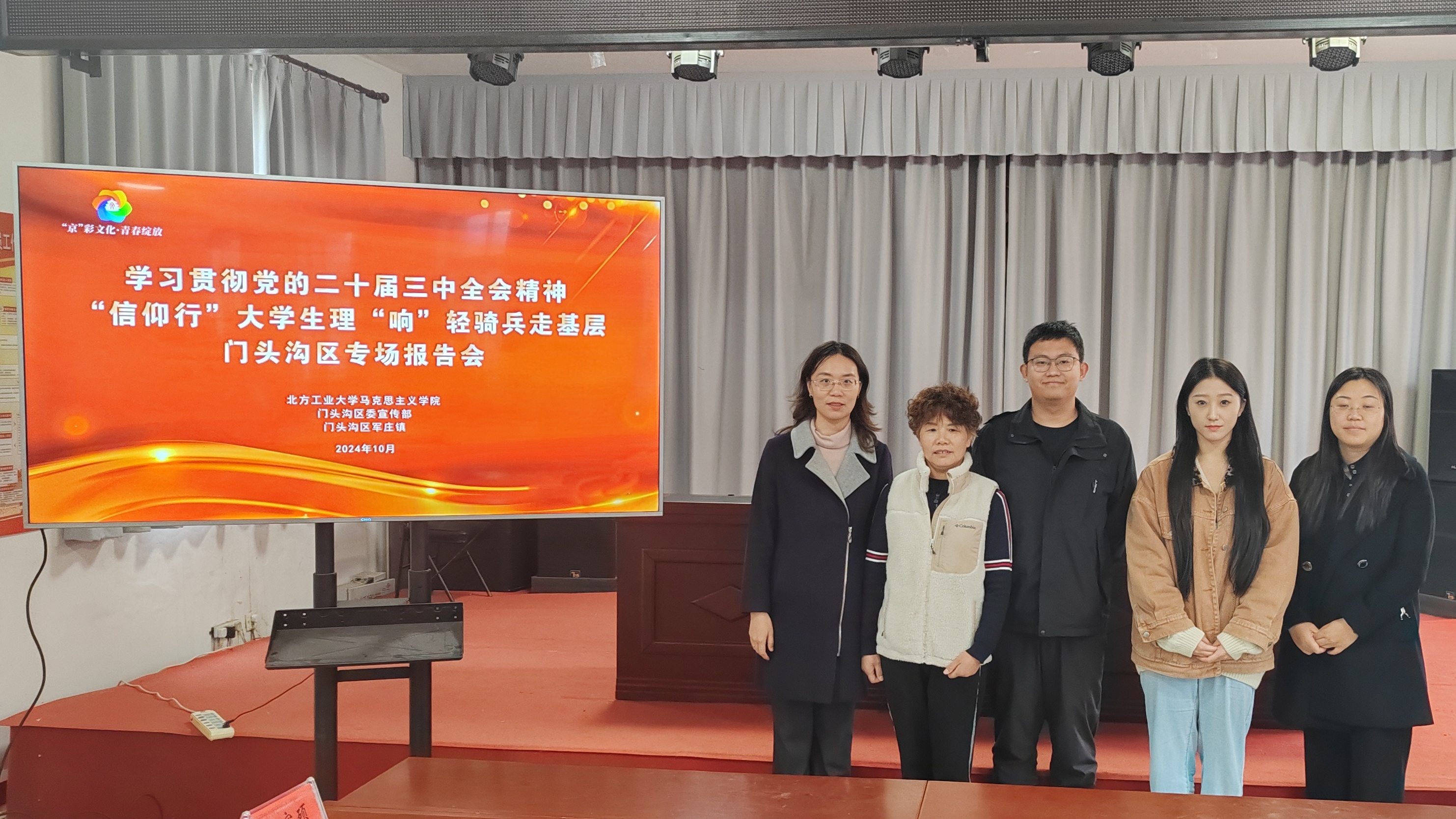为推动学习贯彻党的二十届三中全会精神走深走实,让党的创新理论在基层落地生根,营造奋进新征程的良好氛围,10月30日,马克思主义学院师生宣讲团赴门头沟区城子街道、军庄镇开展大学生理“响”轻骑兵走基层活动,专题宣讲党的二十届三中全会精神。百余名党员代表、群众代表参加宣讲活动。宣讲团师生分别以“解读党的二十届三中全会精神”“京畿红迹,大有可为”“强教育之基,筑强国之梦——以北京市教师轮岗制度为例”“传承清廉...