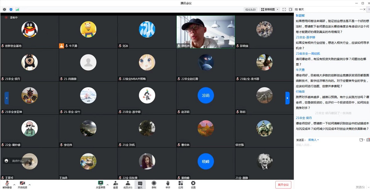 11月19日上午,经济管理学院通过腾讯会议在线举办了“创新创业导航”系列讲座第二讲。投资人兼中国“互联网+”大学生创新创业大赛历届评审专家谭茗洲先生以“创新创业四要素”为题,与永利官网80余名师生在线交流。讲座由经济管理学院创新创业基地刘冰副教授主持。谭茗洲从想法、产品、团队、执行四个维度对创新创业进行了解读,并从投资人视角分析每个维度下的具体做法,深化了学生对创新创业的理解。讲座结束后,老师和同学们提问...