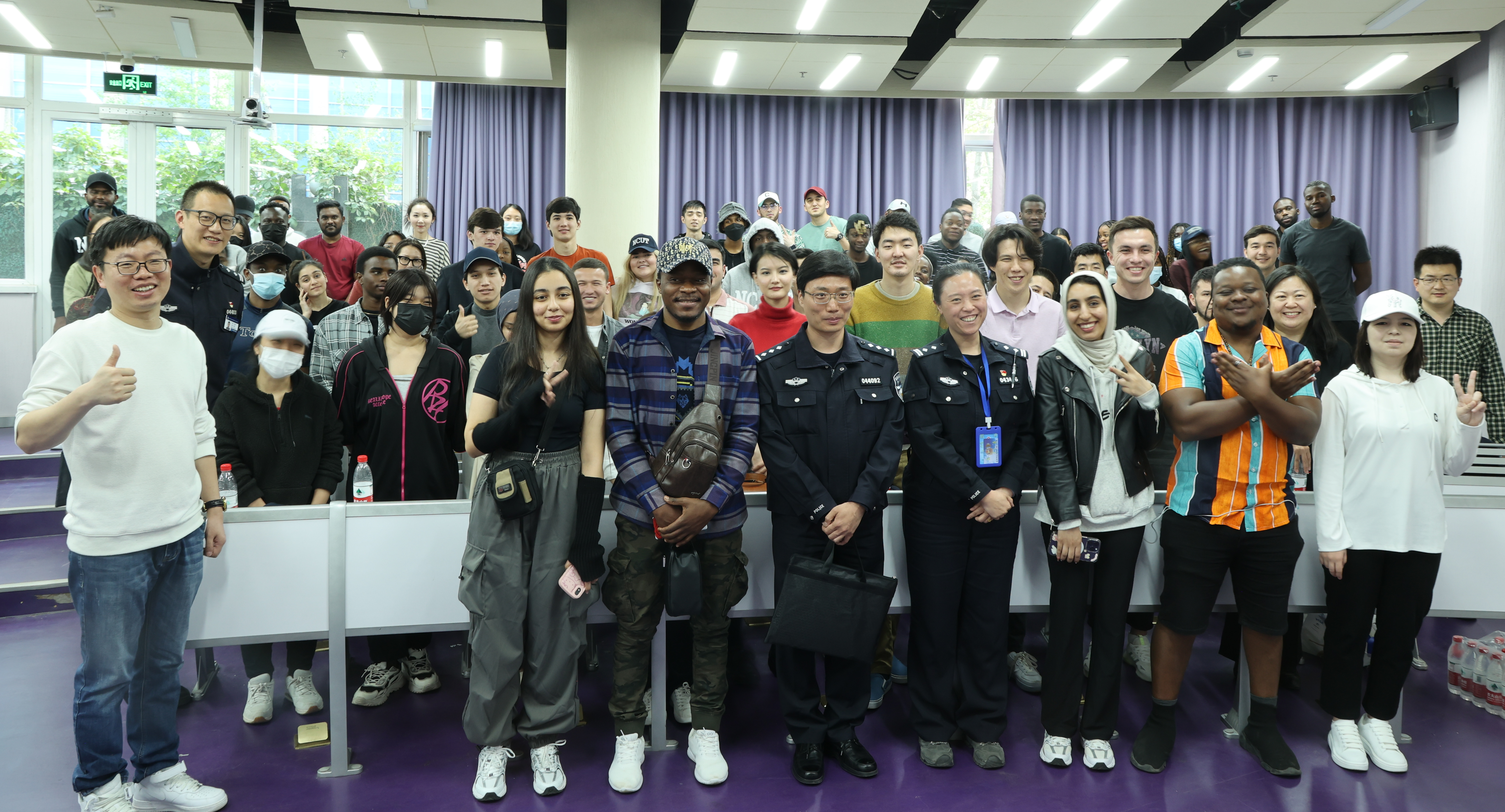 4月18日,国际学院联合北京市公安局石景山分局为国际学生开展中国法律法规宣传教育专题讲座。共有来自30多个国家的70余名国际学生参加了本次活动,北京市公安局石景山分局出入境管理大队副大队长吕欧、签证官刘卓超、田佳警官,北京市公安局石景山分局刑侦支队现案中队中队长邢运伟、马振新警官及北京天康戒毒康复所燕涛警官等出席本次活动。国际学院院长韩飞在敦品楼407会议室会见了吕欧等警官,他对各位警官来校开展法宣工作...