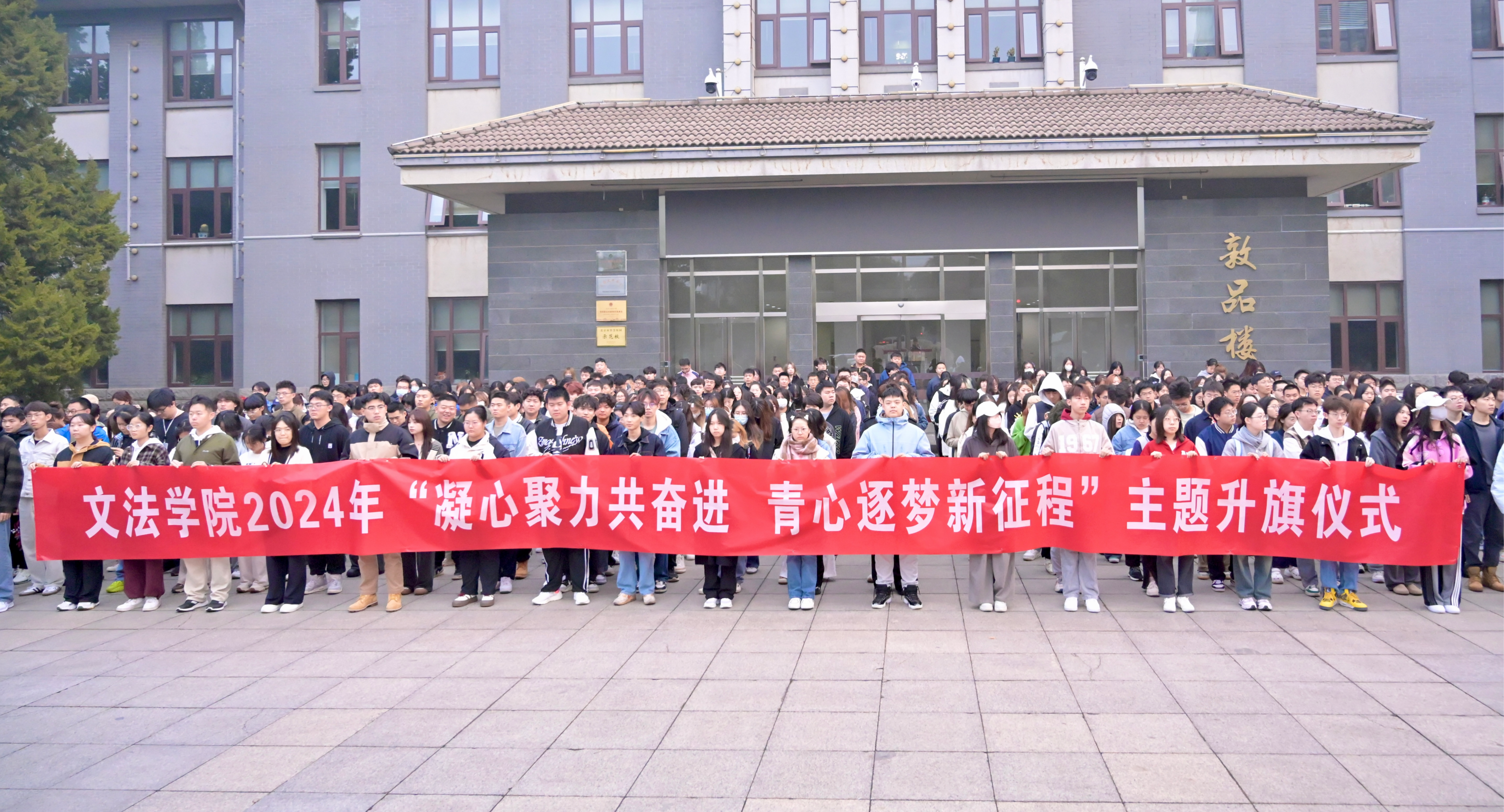 为学习贯彻党的二十届三中全会精神,深入落实新生引航工程,引导青年学生以锐意进取的姿态承担当时代责任,10月14日,文法学院举行“凝心聚力共奋进,青心逐梦新征程”主题升旗仪式。学院党委副书记邝洪波、各年级辅导员、2024级全体本科新生以及新任团学干部参加了活动。伴随着铿锵激昂的《义勇军进行曲》,鲜艳的五星红旗在全体师生的注视下缓缓升起,迎风飘扬。邝洪波勉励同学们要在主动学习党领导人民为国家富强、民族复...