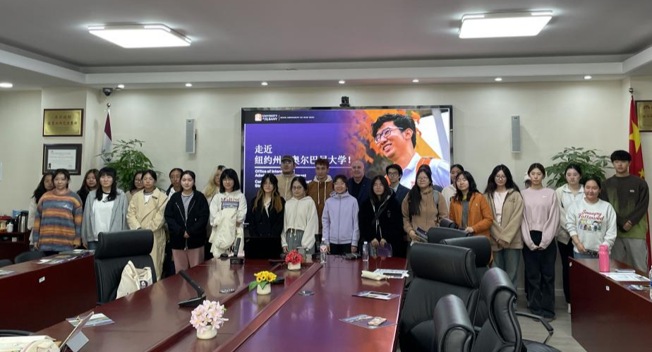 10月24日,美国纽约州立大学奥尔巴尼分校代表团一行来校交流,在经济管理学院开展本次活动的参访环节,共计35名有意向海外留学的学生参与了此次交流学习,此次活动旨在为有意向海外留学学子搭建一个了解国外高等教育、探索留学新路径的平台。活动中,纽约州立大学奥尔巴尼分校国际事务部主任JohnD.Pomeroy以其丰富的留学经验和深厚的学术底蕴,向参会同学们详细介绍了奥尔巴尼分校的学校规模、地理位置、专业设置及教学特色。Jo...