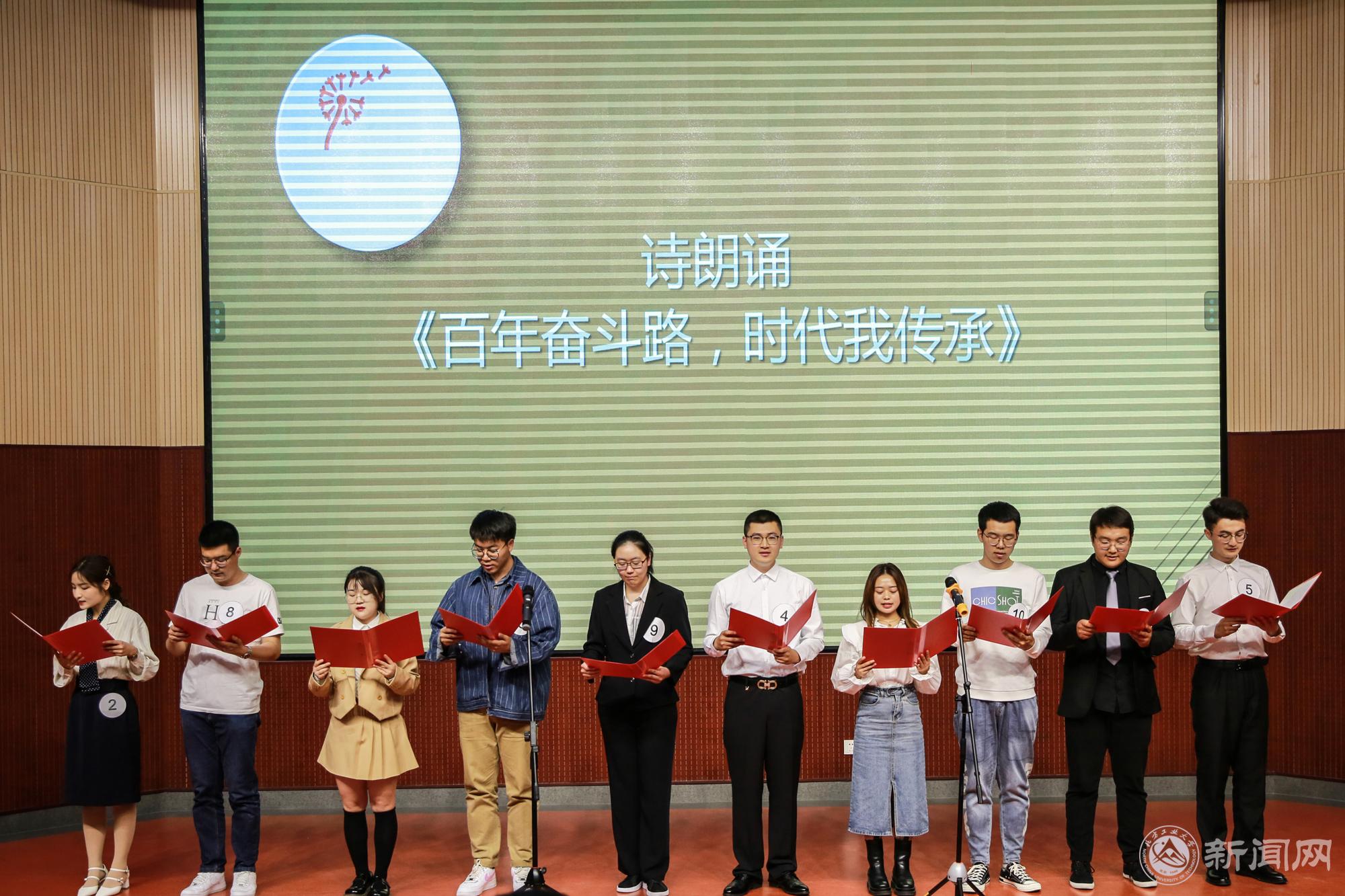 演讲环节结束后,由参赛选手们集体带来的诗朗诵《百年奋斗路,时代我传承》将整个比赛推向了高潮,“放心吧,我们的党、我们的祖国,一代新人在接受你们庄严的检阅!”字里行间无一不透露出北方工大学子对党的赤诚之心。