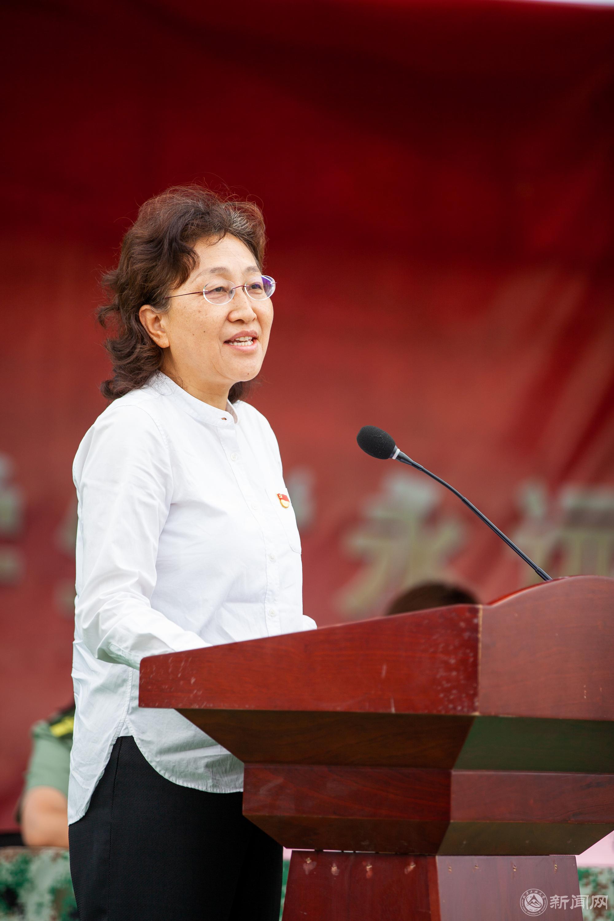栗苹代表学校向参训同学问好,向承训基地教官致以感谢,向军训旅教师和工作人员表示问候。她说,军训是大学生的必修课,13天的军训生活是难得的人生历练。她用“请党放心,强国有我!”激励参训同学,并对大家提出四点要求:一是满怀激情,积极参训,以实际行动庆祝建党百年华诞;二是严明纪律,听从指挥,牢固树立令行禁止的纪律意识;三是比学赶帮、创先争优,积极参加文体活动和各项竞赛;四是严整军容风纪、树立良好形象,展现新时代大学生风采。栗苹强调,军训要把安全工作作为重中之重,全体参训师生要牢固树立安全意识,做到张弛有度、劳逸结合;要把部队的优良传统和作风带到学校,促进学风全面提升,助力高水平应用型大学建设。