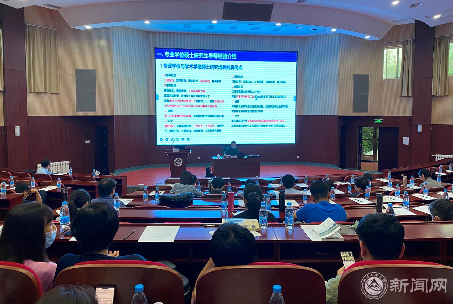 北京工业大学范晋伟教授应邀做了《专业学位导师经验及基于产学研基地的专业硕士培养模式改革》的报告。范教授结合自己30余年的工作经历,介绍了硕士生导师提高业务水平的方向、措施以及指导硕士生的要点,特别是如何从工程应用中提炼出科学问题,范教授详细地介绍了自身的一些有益做法和建议,指导教师们纷纷表示很受启发。