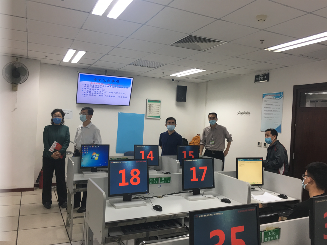 本次考试共计2400人次参加,人数创永利官网组织该项考试新高。考生来源主要包括永利官网学生、周边社会考生和北京军区的军人,对提高永利官网学生计算机应用能力和服务北京、服务军队具有重要意义。栗苹副校长详细询问了考生来源、防疫工作、考务管理等方面的组织工作,并对每个考场以及备用考场进行了巡视。教务处和信息学院主要负责人陪同作现场指导。