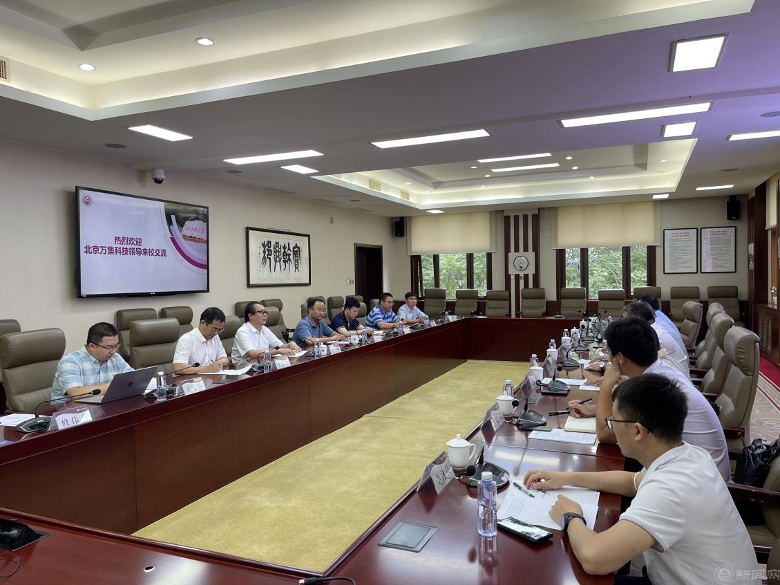王力结合学校的发展历程,重点介绍了学校的办学定位、人才培养、优势学科、特色专业以及在科技创新和社会服务等方面工作开展情况,希望双方在产学研融合、重大项目申报等方面进行深度合作,共同推动学校和万集科技的高质量融合发展。
