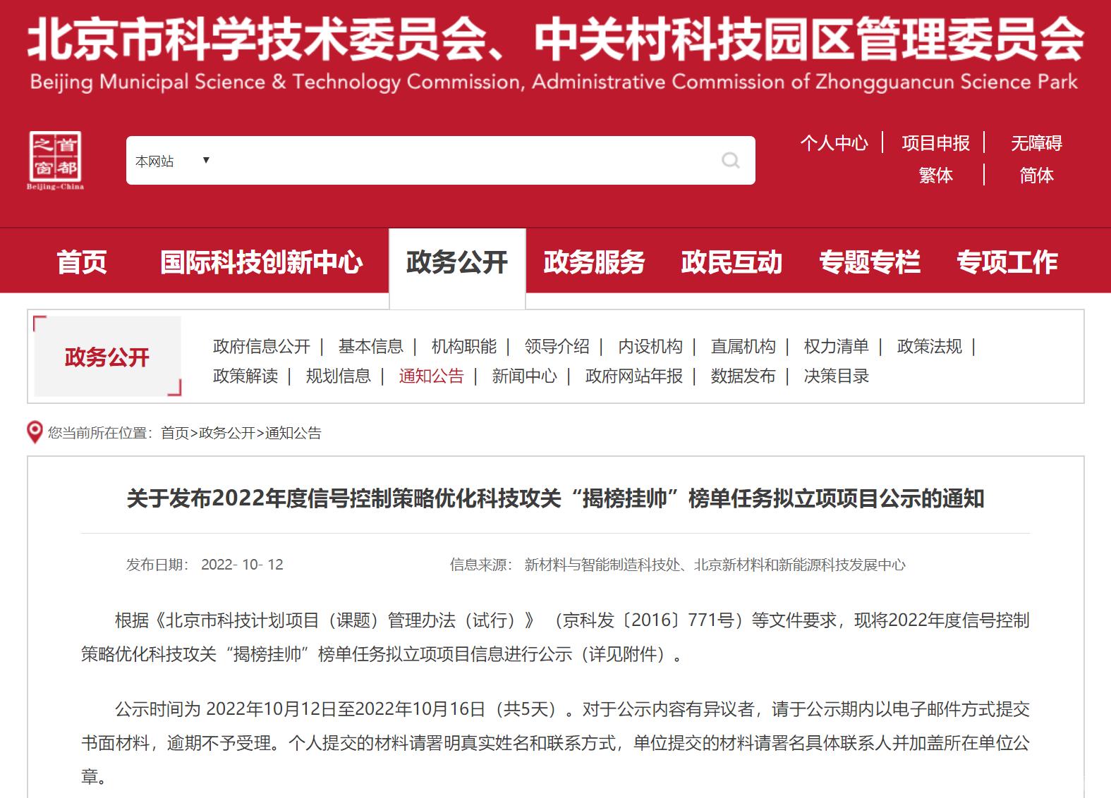 10月12日,北京市科委公示了2022年度信号控制策略优化科技攻关“揭榜挂帅”拟立项目名单,永利官网智能交通科研团队联合北京高鸿智联科技有限公司、北京百度网讯科技有限公司和智慧足迹数据科技有限公司共同申报的“智能网联数据驱动的城市交通信号控制优化关键技术及应用”项目成功入选。