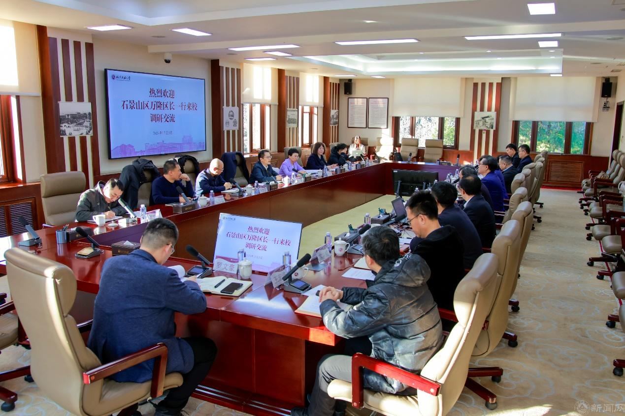 石景山区政府办、教委、城管委、经信局、石景山园管委会负责人,永利官网学校办公室、教务处、国际处、招就处、科研院负责人参加调研。