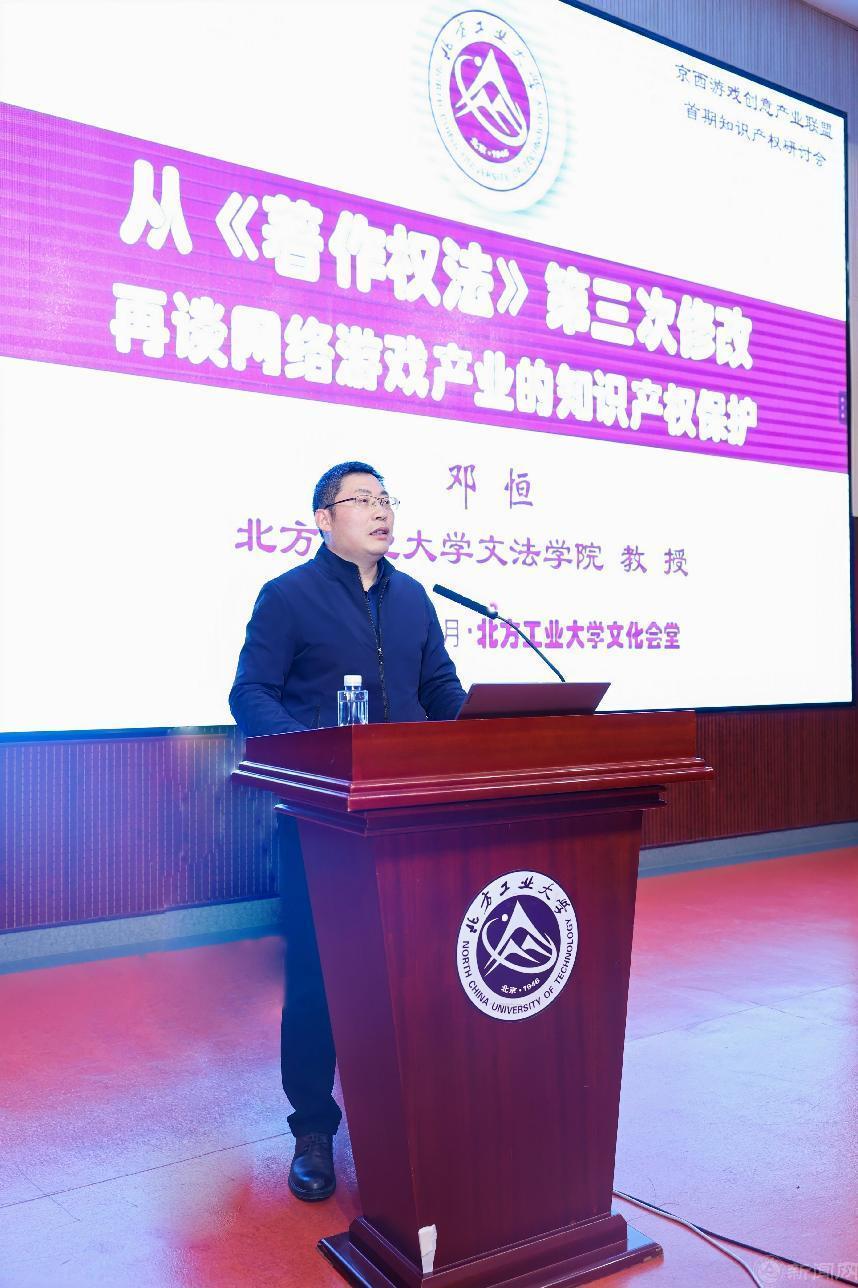 主旨演讲环节,ylzzcom永利总站线路检测文法学院教授、知识产权专业责任教授邓恒发表了“从《著作权法》第三次修改再谈网络游戏的知识产权保护”主旨演讲。邓恒教授首先向大会介绍了永利官网知识产权专业及学科发展的现状,也倡议企业代表全面招聘永利官网优秀毕业生,并鼓励毕业生积极投身网络游戏企业,以求人生职业的高质量发展;随后梳理出涉及网络游戏侵权的部分典型案例之裁判要旨,据此提出了网络游戏产业发展及司法保护中亟待厘定和明确的前沿理论问题。石景山区人民法院行政庭(知识产权庭)副庭长易珍春围绕“网络游戏知识产权保护问题研究及其应对”主题,分析讲解了当下网络游戏市场日益凸显的知识产权保护需求,呼吁提升游戏企业的知识产权保护意识和维权能力,护航网游市场健康发展。