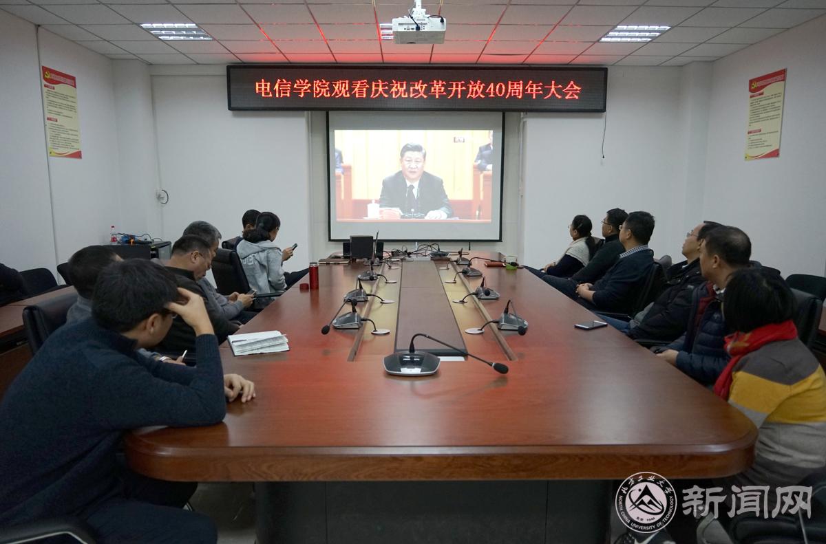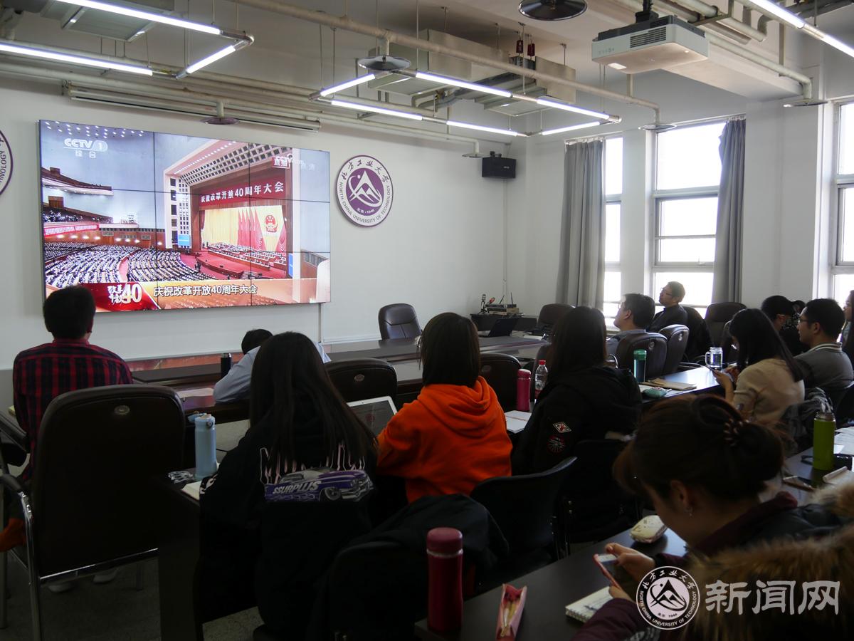 2018年12月18日上午10时,庆祝改革开放40周年大会于在人民大会堂举行。中共中央总书记、国家主席、中央军委主席习近平同志发表重要讲话。学校组织广大师生通过电视、网络等形式,收看大会实况,第一时间学习习近平总书记的重要讲话精神。