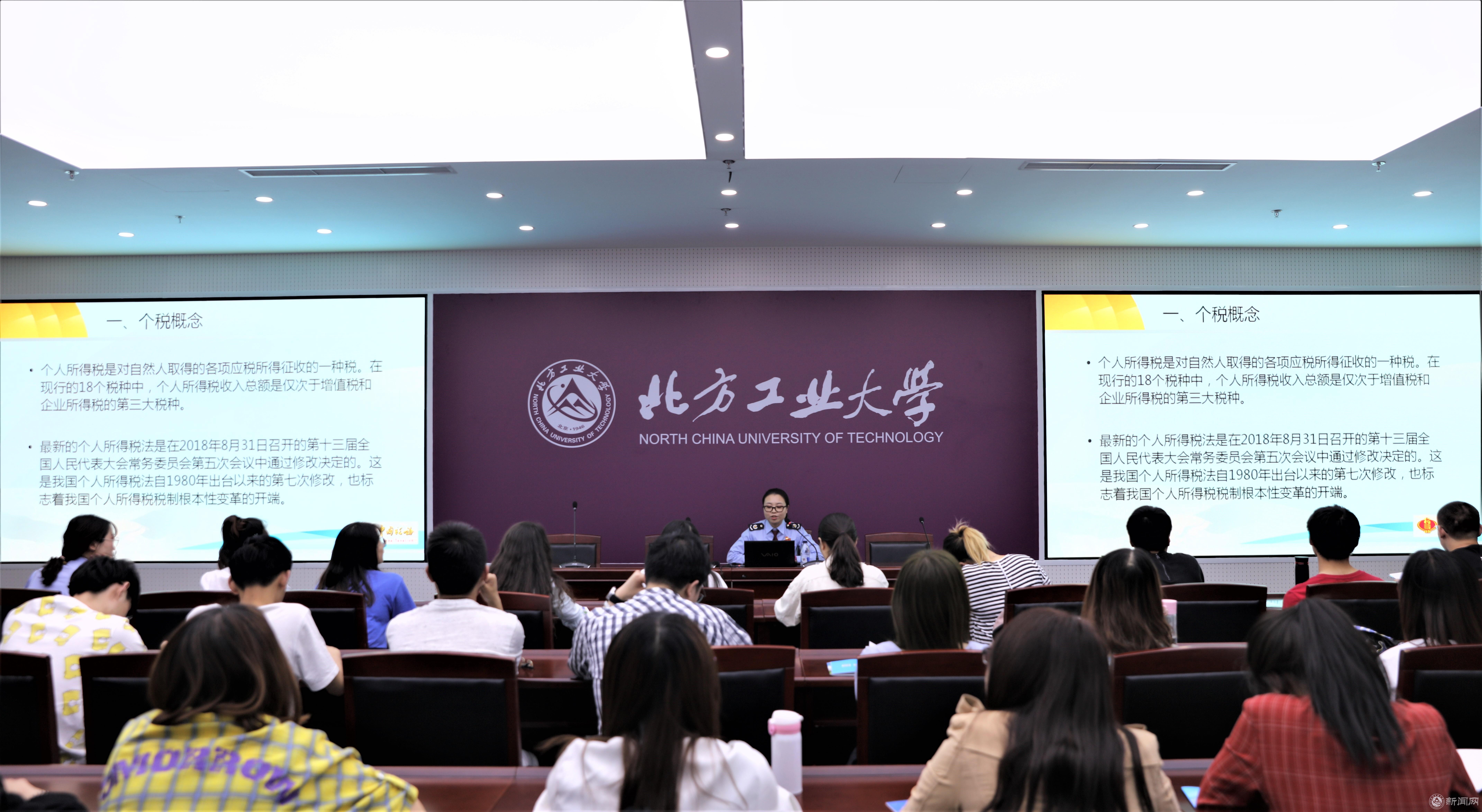 5月9日,学校与石景山区税务局在永利官网浩学楼报告厅共同举办了“税收宣传进校园”活动。王建稳副校长、石景山区税务局徐慧卿副局长、永利官网经济管理学院、文法学院的硕士研究生、本科学生110余人参加了活动。