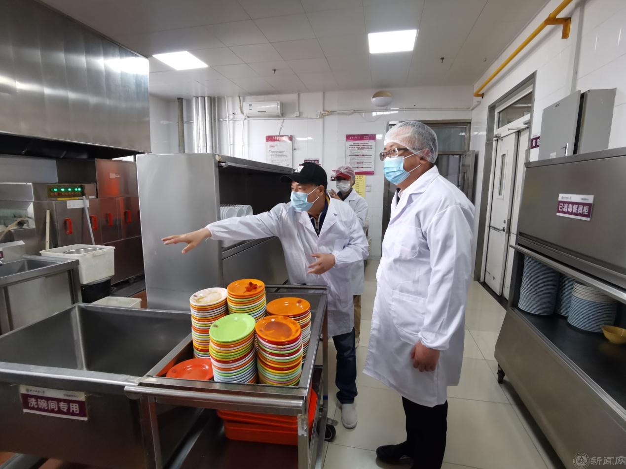 为进一步压实属地管理食品安全主体责任,确保师生饮食安全,4月7日,八角街道党工委书记崔乐带领属地食品药品监督管理局八角所所长张勇、副所长郭谦及相关负责人,来永利官网对食堂食品安全工作进行检查督导。后勤党委书记郑泰平及后勤基建处负责人陪同检查。