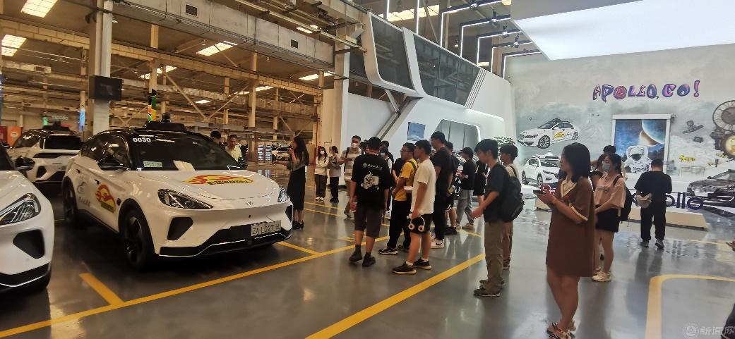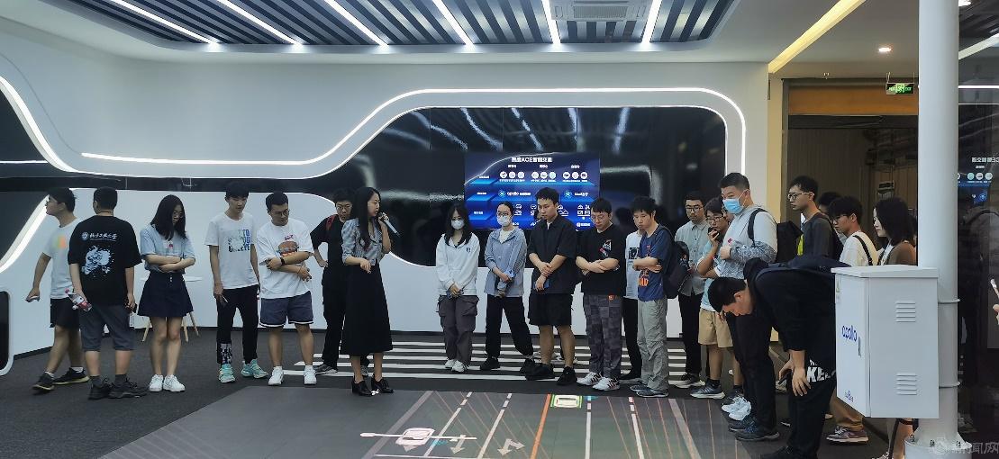在活动中,同学们在讲解员的引导下,依次参观了基地的科研成果展示区、智驾-智舱-智图技术演示区、萝卜快跑运营指挥中心和5G云代驾工作区等,了解了百度在自动驾驶领域的技术创新和成果,近距离接触了代表百度自动驾驶技术发展历史的六代自动驾驶汽车,观看了车路云图,并就相关技术问题、就业机会、学生实践通道等问题与现场工作人员进行了积极的互动和讨论。