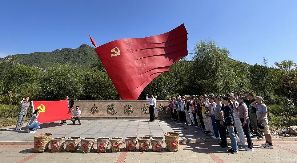 9月21日,离退休党委组织离退休党员赴“红色背篓”精神发源地——房山区黄山店村开展主题党日活动,党委委员、离退休处工作人员以及各支部党员近60人参加活动。