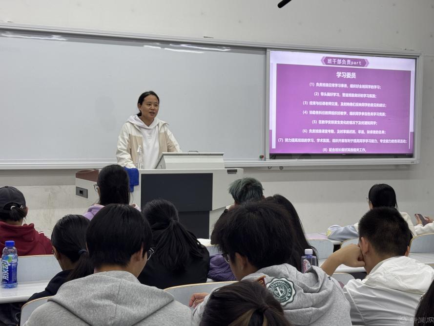 计类辅导员陈煦婷为新生班委讲解相应的班委职责。例如班长应负责班级全面工作,及时传达学校各项政策,配合班导师和辅导员开展班级工作。与各班委保持密切联系,协助任课老师维护教学纪律,调动同学们的积极性,及时向班导师、辅导员及学院汇报班级重大情况或同学们的重要问题。团支书应负责团支部工作,组织班级的政治理论学习和支部“推优”工作。建立班级青年志愿者、社会实践活动基地,开展各项志愿服务和社会实践活动。学习委员应负责班级日常学习事务,组织好全班同学的学习。带头搞好学习,营造班级良好的学习氛围,负责班级课堂考勤,及时掌握迟到、早退、缺席者的名单。明确班委职责,能够更好的提高班级工作效率。
