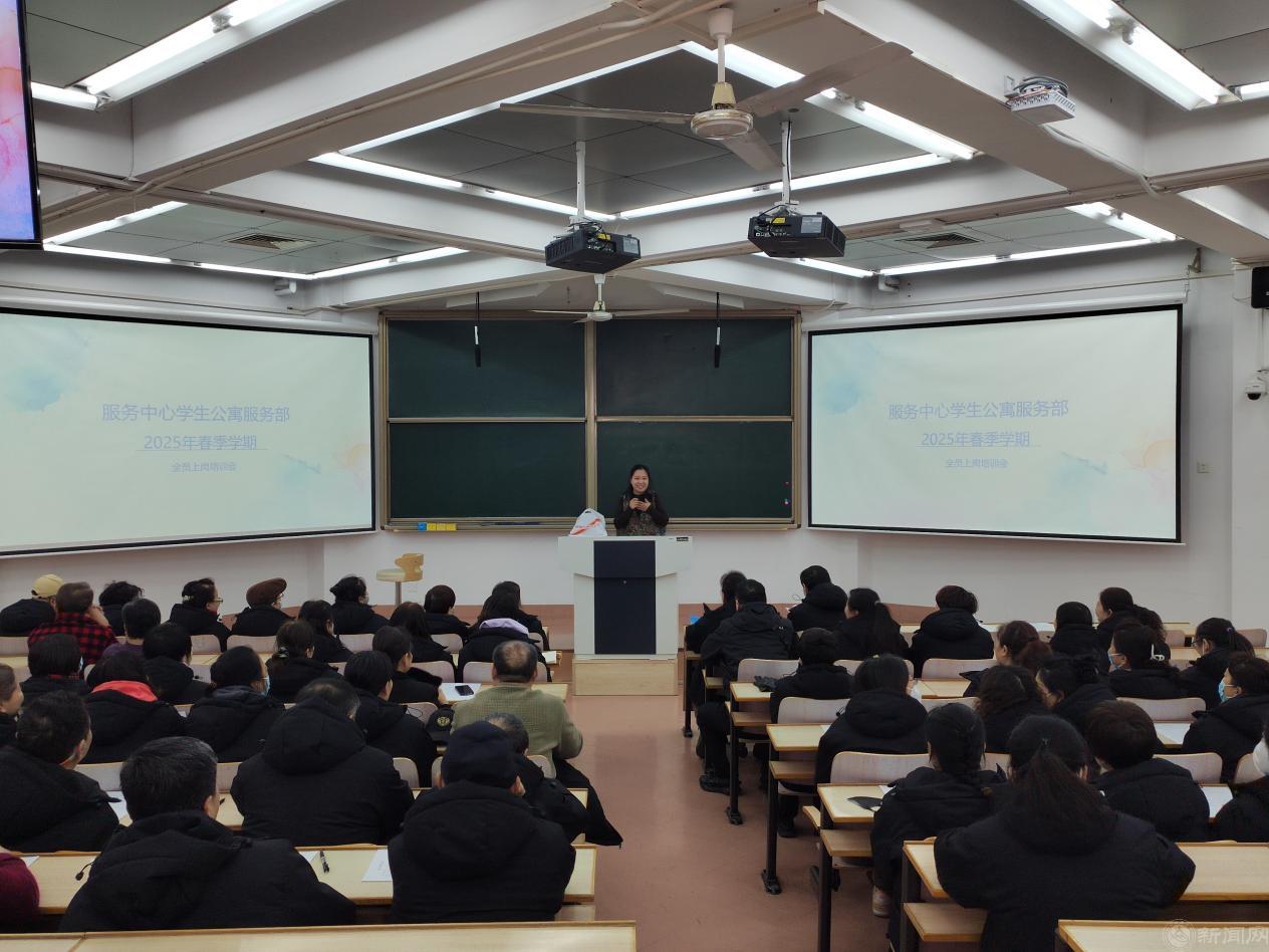 为进一步提升服务质量与管理水平,学生公寓服务部于2月18日,在广学楼西301教室组织了一场面向全体员工的上岗培训,本次培训由学生公寓服务部张雪主讲,参会人员共70人。