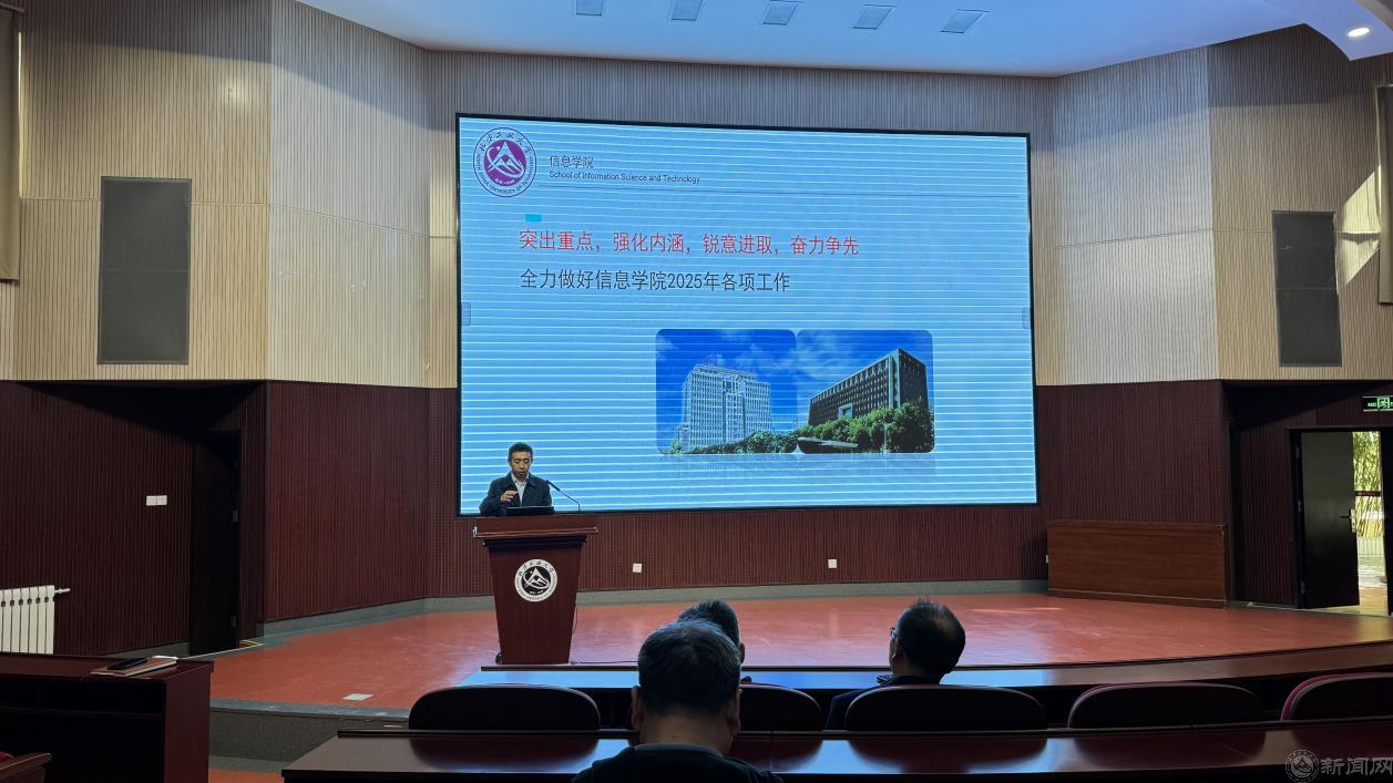 3月25日上午,信息学院在文化会堂召开春季学期工作部署会,传达学校新学期工作部署会精神,全面总结学院2024年工作成效和部署2025年目标任务,并启动深入贯彻中央八项规定精神学习教育。学院领导班子、全体教职工参加会议。